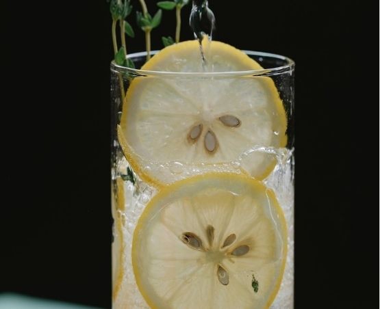 4. Garneer met een schijfje limoen of citroen.