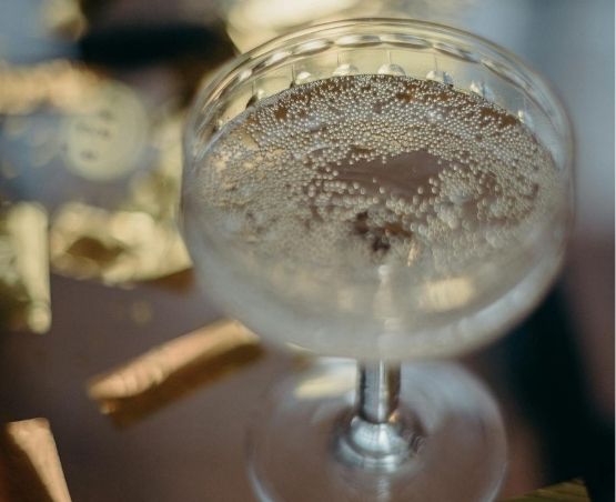 4. Zeef de inhoud van de shaker in een gekoeld champagneglas.