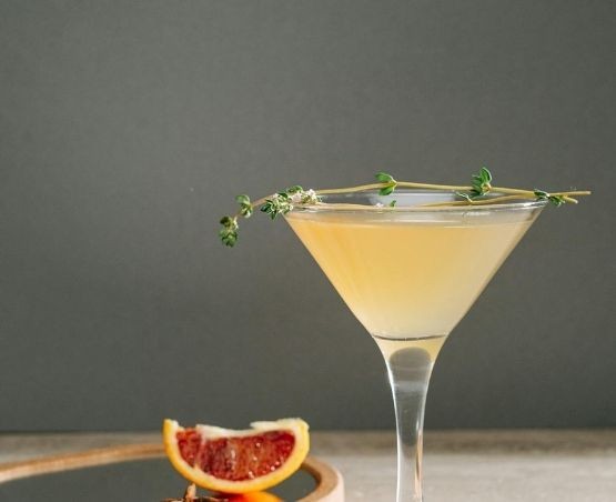 5. Zeef het mengsel dubbel (door een fijne zeef) in een gekoeld coupeglas of een champagneflûte.