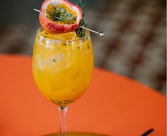 5. Garneer met een halve passievrucht bovenop de drank.