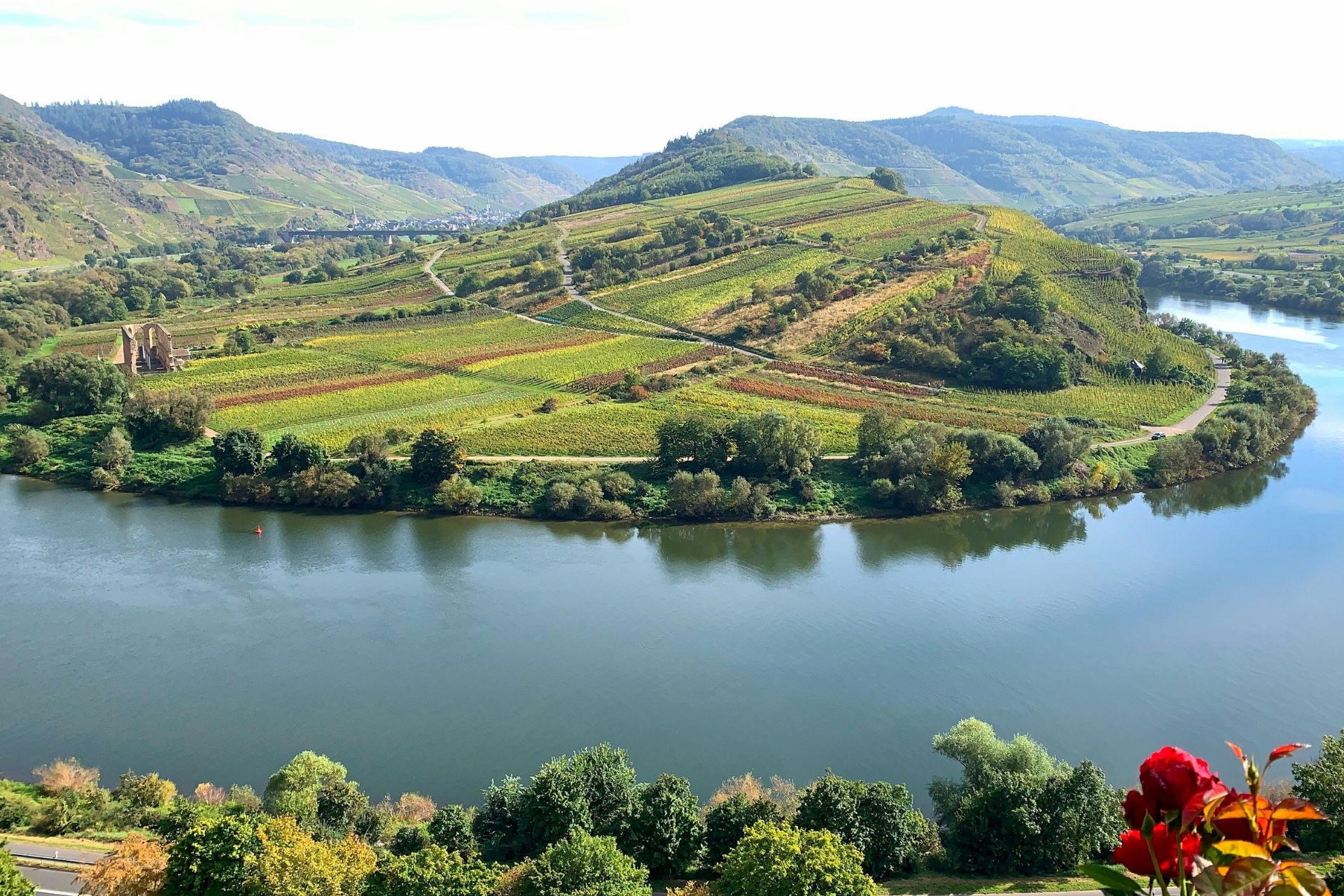 De steile wijngaarden aan de Moezel behoren tot de steilste ter wereld. In sommige delen kan er zelfs alleen met de hand geoogst worden.
