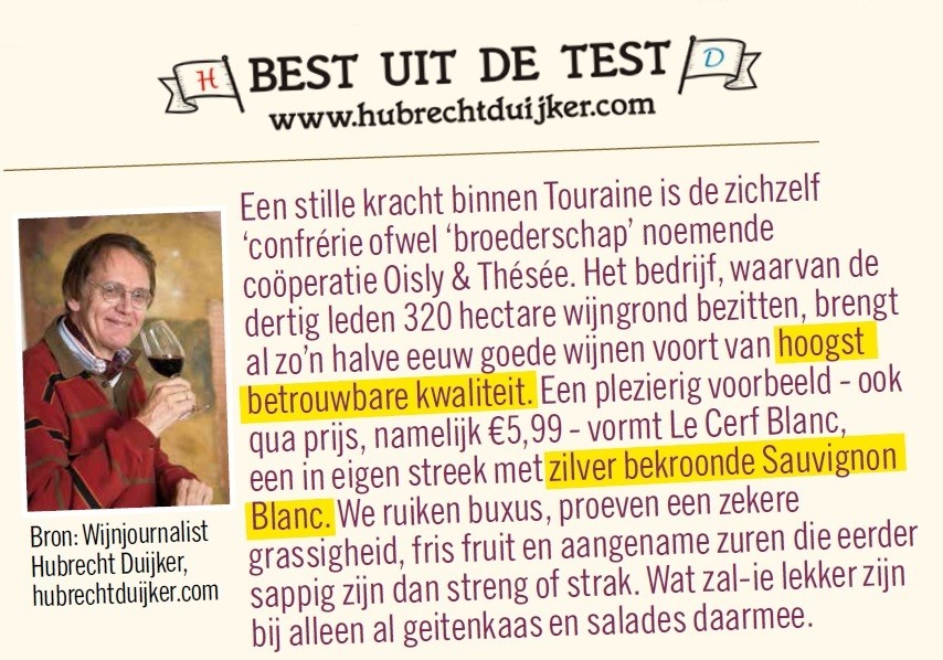 Een Touraine Sauvignon Blanc in hart en nieren. Hij is in eigen streek met zilver bekroond en dat is zeker terecht. Wat een traktatie, de buxus spat uit het glas en we proeven een heerlijk frisse grassigheid, sappig vers fruit en aangename zuren die zeer vriendelijk over komen. Dit is een heerlijkheid voor elke wijnliefhebber! Wat zal-ie voortreffelijk zijn bij asperges, mosselen of een salade met wat geitenkaas, smullen en genieten dit!